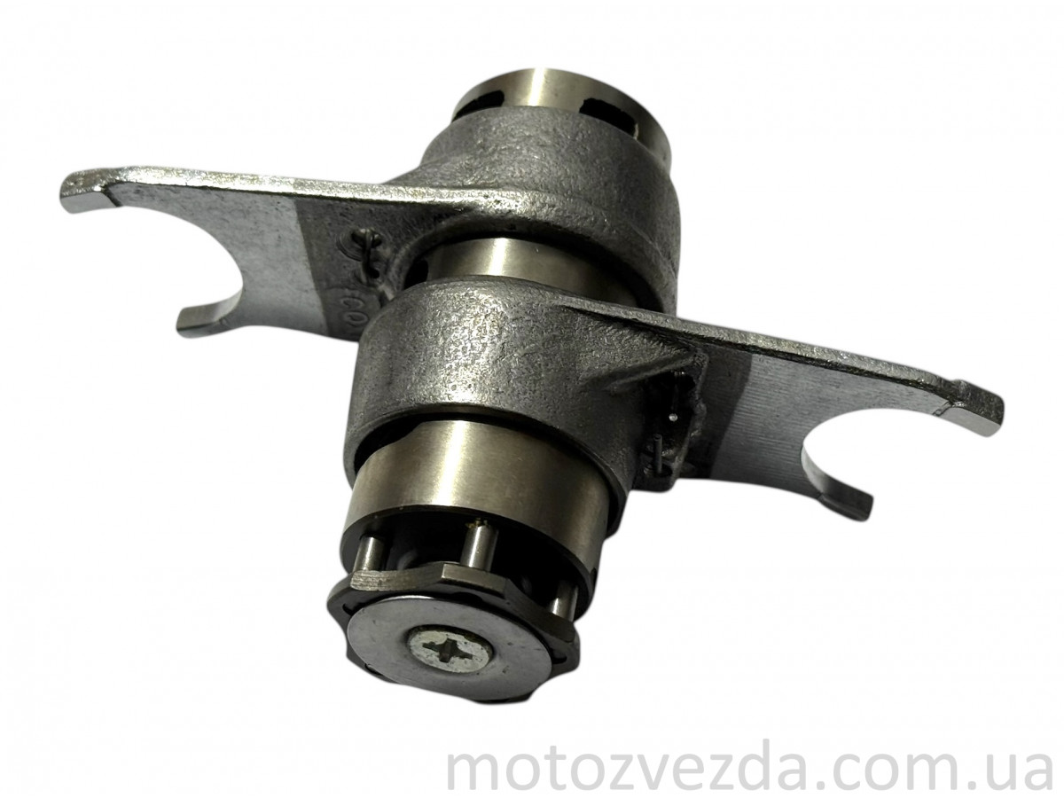 Набір виделок перемикання швидкостей для двигунівDelta(у зборі) — це комплект внутрішніх компонентів механізму коробки передач, призначений для ремонту або заміни зношених деталей у двигунах мопедів типу Alpha, Delta, Active.