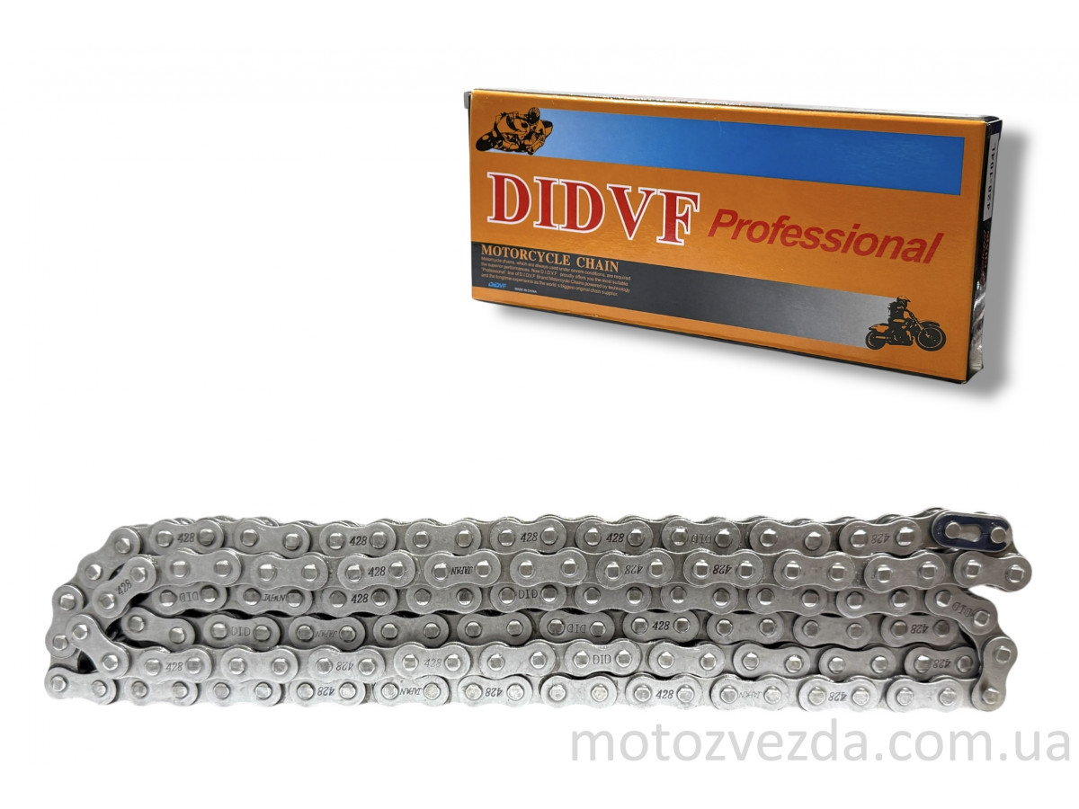 Привідний ланцюг 428H-132L "DID" - це посилений безсальниковий ланцюг, призначений для малокубатурної мототехніки (125-200 см ³). Індекс "H" (Heavy Duty) вказує на збільшену товщину пластин порівняно зі стандартним ланцюгом 428.