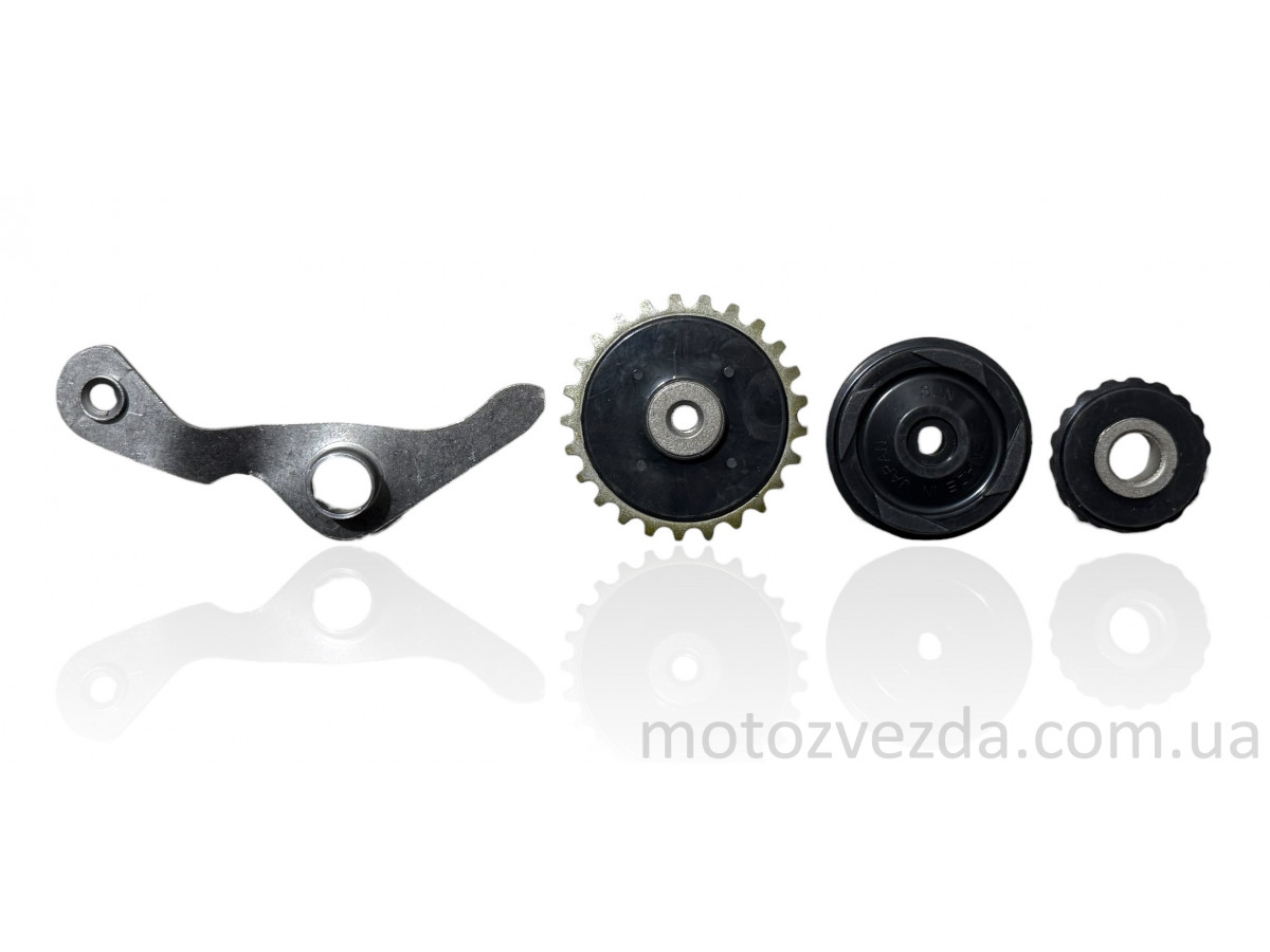 Натягувач ГРМ Delta (комплект: роликів 3 шт. + коромисло) - це ремонтний комплект елементів газорозподільного механізму для малокубатурних китайських чотиритактних мопедів і легких мотоциклів з об'ємом двигуна від 50 до ...