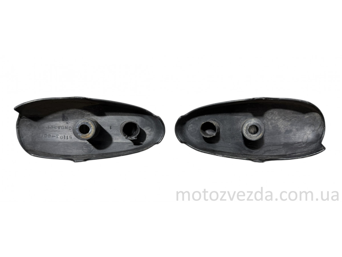 Набор декоративных накладок на вилку (пыльники, чехлы) с оригинальным номером 51103-GCW для скутера Honda Tact AF-51 производства Япония - это оригинальная запчасть, предназначенная для защиты штоков передних амортизаторов от грязи и пыли.