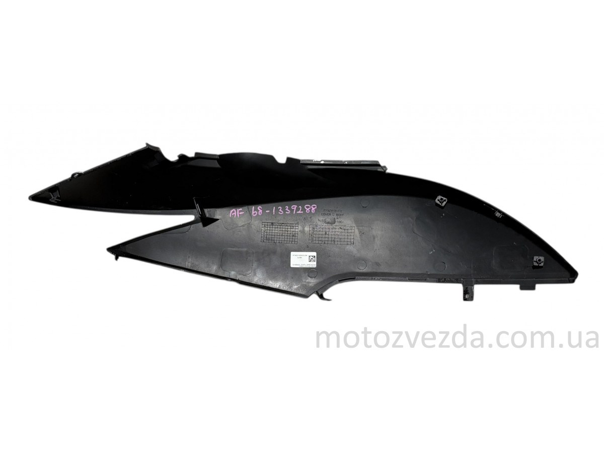 Левый боковой обтекатель для скутера Honda Dio AF-62/AF-68 в фиолетовом цвете (производство Taiwan), предлагаемый по цене уценки – это качественная пластиковая деталь кузова, которая имеет определенные косметические или конструктивные дефекты.