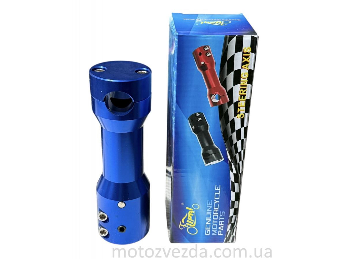 Крепление открытого руля (вынос) LIPAI — это универсальный аксессуар синего цвета, предназначенный для установки открытого руля (диаметром 22 мм) на различные модели скутеров. Оно служит заменой штатного крепления, часто используется для тюнинга и придания транспортному средству индивидуального внешнего вида.
