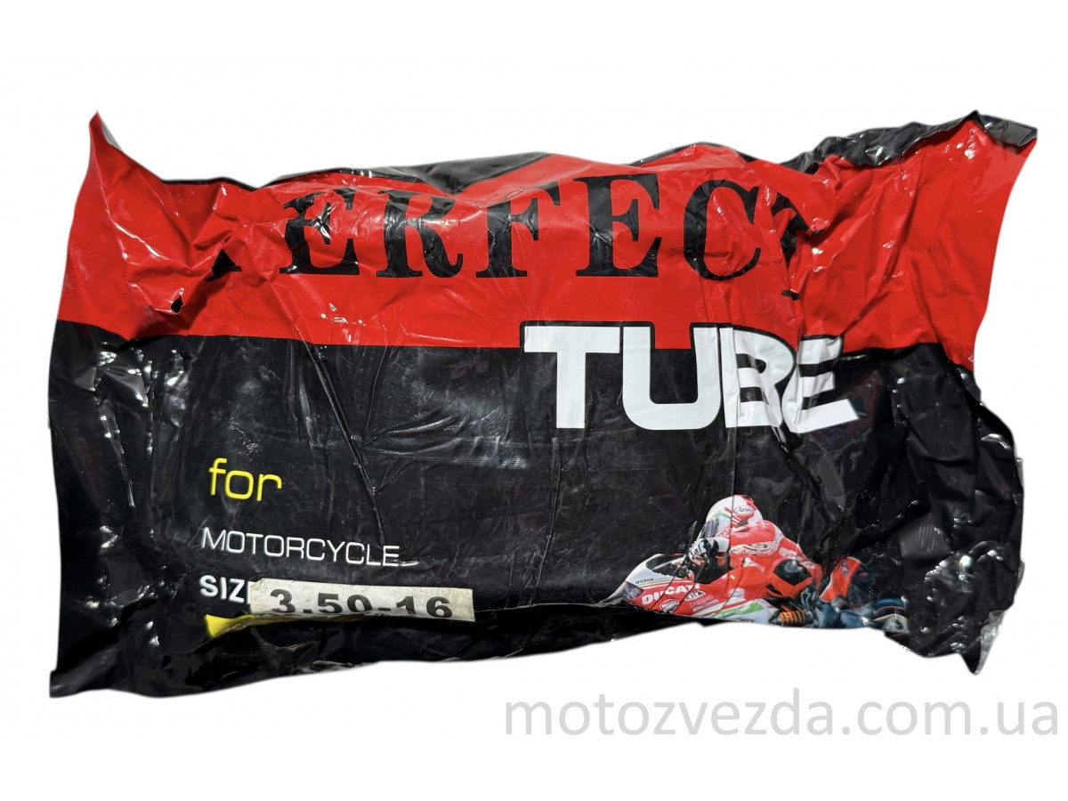Камера 16" 3.50-16 каучук "PERFECT" - це міцна внутрішня камера, призначена для використання в шинах малокубатурної мототехніки, такої як мопеди, легкі мотоцикли, а також у деяких видах садової або агротехніки з діаметром 16 дюймів.