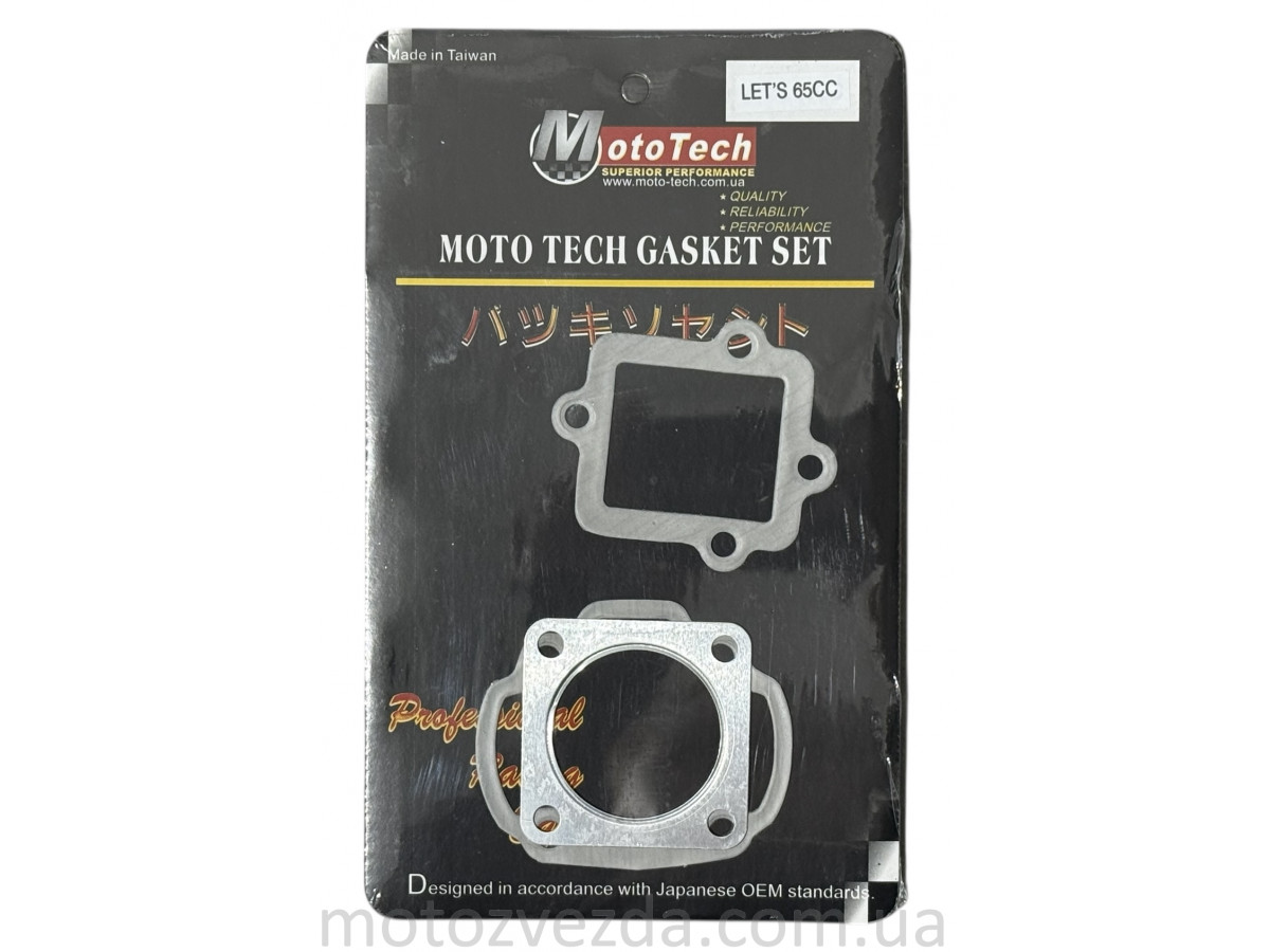 Невеликий набір прокладок 65cc LETS/LETS-2/NEW (TW) M-T SUPERIOR є комплектом прокладок циліндро-поршневої групи для скутерів Suzuki з об'ємом двигуна, збільшеним до 65 куб. див. Продукцію виготовлено тайванським виробником Mototech (M-T SUPERIOR).