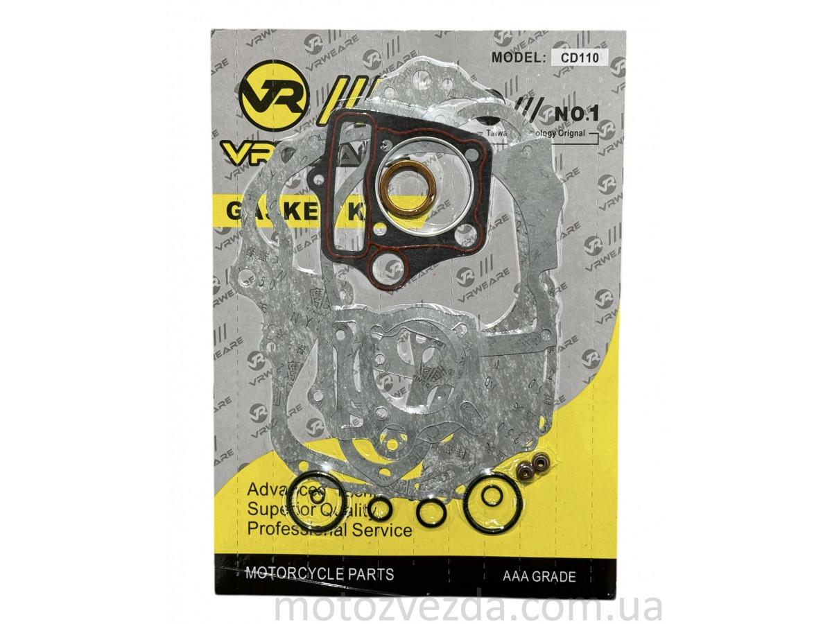 Комплект прокладок двигуна VR GS-110 Active є повним набором всіх необхідних ущільнювальних елементів, призначений для ремонту та обслуговування 4-тактних двигунів мопедів Alpha, Delta, Active та їх аналогів з об'ємом 110 куб. см та діаметром циліндра 52.4 мм.